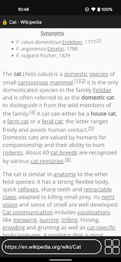 Meet Violoncello, a powerful text-only web browser for Android! This app is great for reading text-heavy webpages such as articles and blog posts, as it removes annoyances such as ads and videos. It's easy to share websites in your main browser to Violoncello, and you can bookmark websites for easy access within the app.