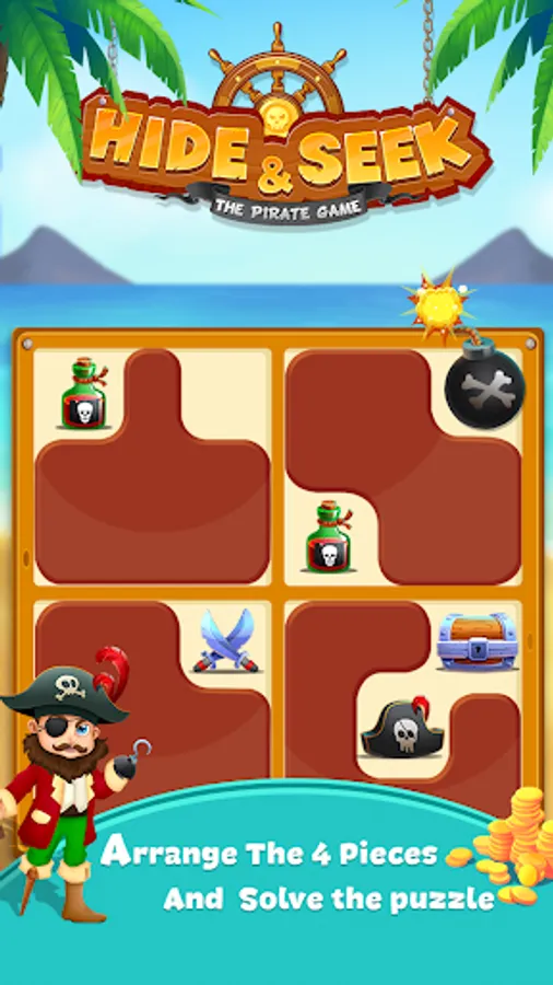 The Pirates Puzzle Game, Simply Solve the Challenges, Play the hide & Seek Game with Story of Pirates.