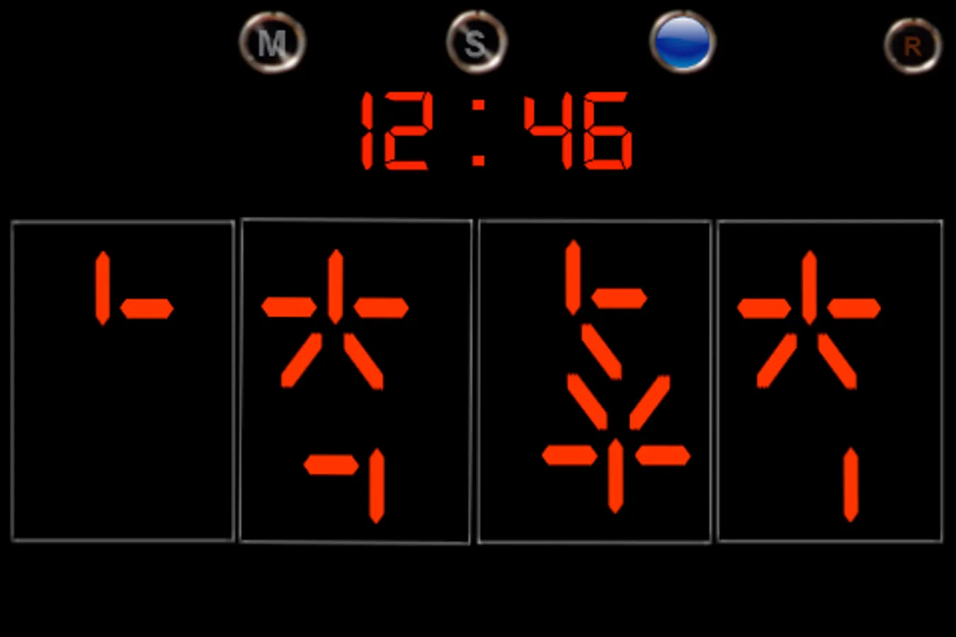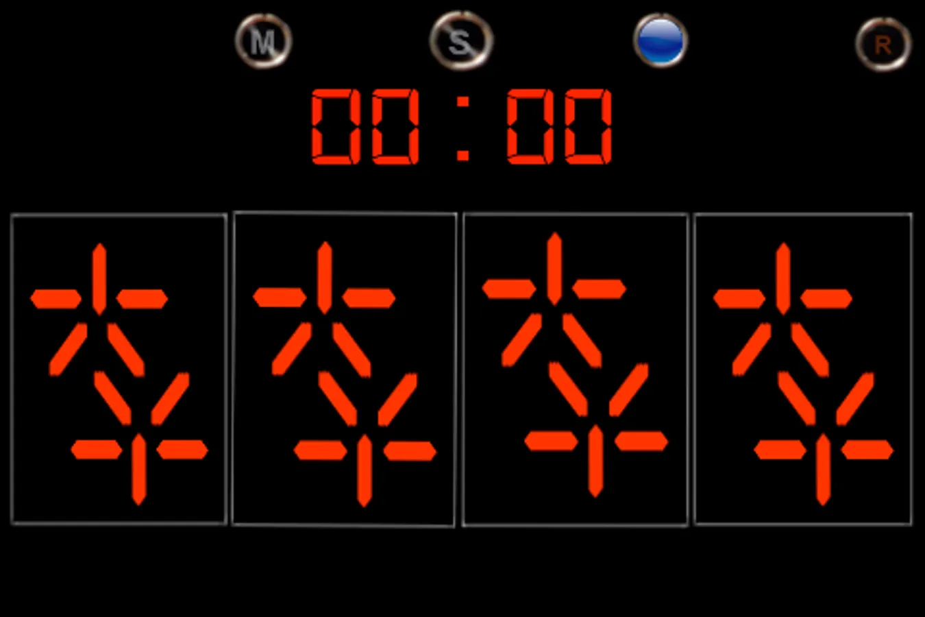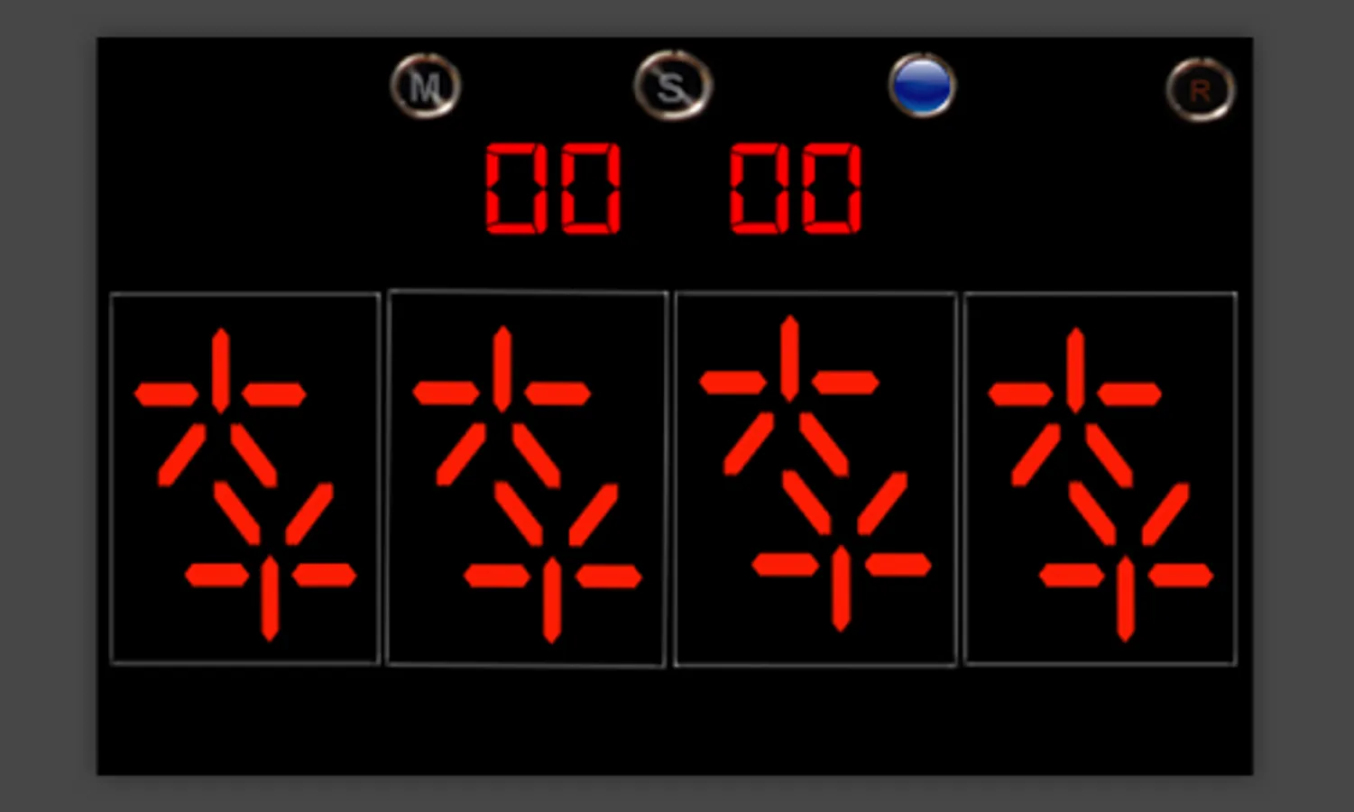 First button, sets minutes, second button, for seconds, third, start countdown timer. Reset button on the corner.