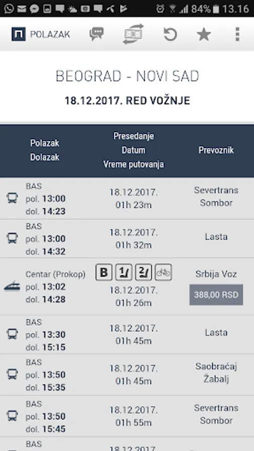 The Red Voznje journey planner is the only application which contains bus and train schedules of more than 250 operators, updated regularly and directly in cooperation with transport authorities and operators in Serbia and Montenegro. It is up to you to list direct connections or connections with interchanges. To check all intermediate stops and the details about your eventual change, open the departure. You can open the operator`s profile page and contact him by phone, Skype or via e-mail. As our platform is an independent project based on officially shared data, we encourage our users to always consult with operators the validity of listed timetables before their journey.