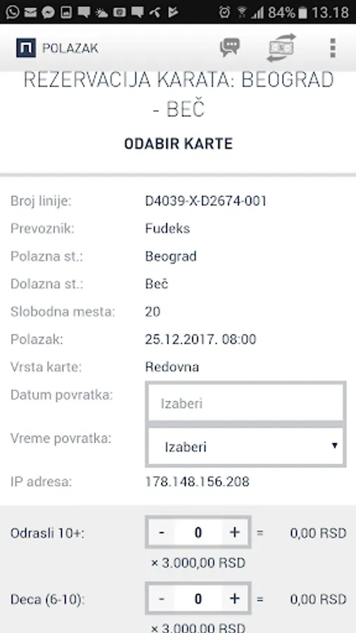 • Currency converter - Ticket prices are available in three currencies: RSD, EUR and CHF, however the default currency is set in RSD in line with Serbian rules. The final amount in our partner for payment processing is always indicated in RSD - regardless of your currency settings.