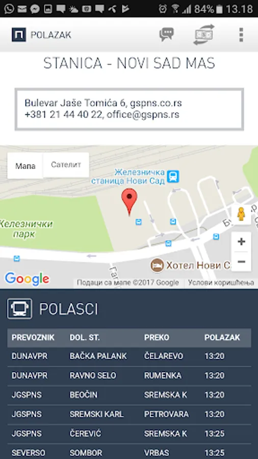 •The bus operators menu - Now you can list and search for each registered transport operator in the official Serbian passenger transport. Contact details and their ratings are available thanks to our user`s feedback. Don`t miss to rate the operator you traveled with and to share your experience with your fellow travelers!