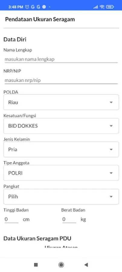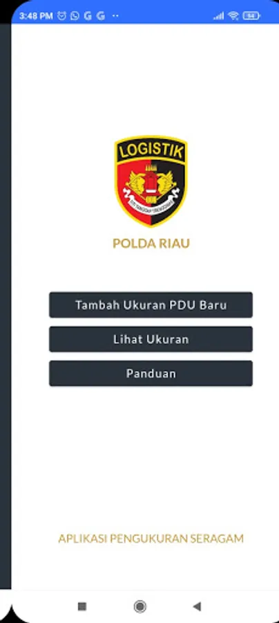 aplikasi yang digunakan untuk mendata ukuran seragam di lingkungan POLDA RIAU