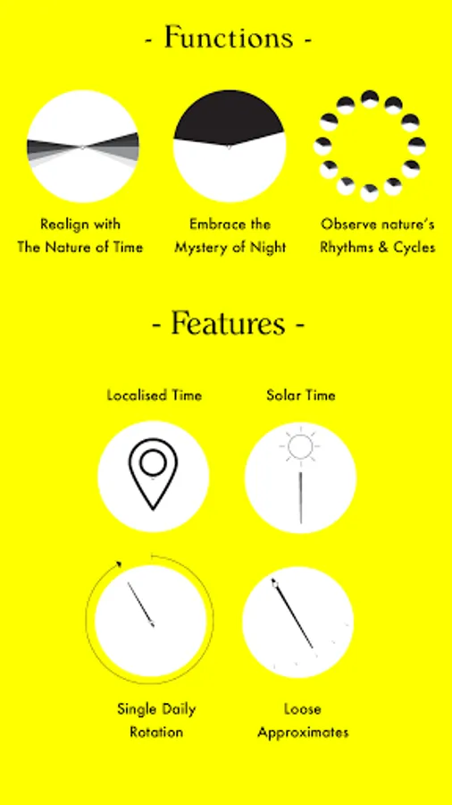 Circa Solar allows you to realign with the nature of time. By visualising time as a phenomenon of daily and seasonal light-dark cycles, rather than the more recent notion of time as a purely mechanical and numerical phenomenon, Circa Solar returns to a pre-industrial relationship of time which we have aligned to through the course of evolution.