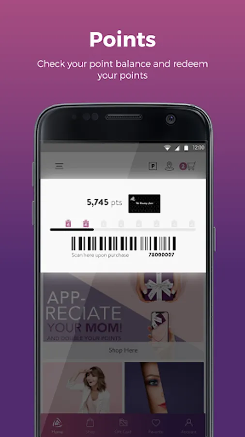 - Accumulate points and check your points balance on the home screen