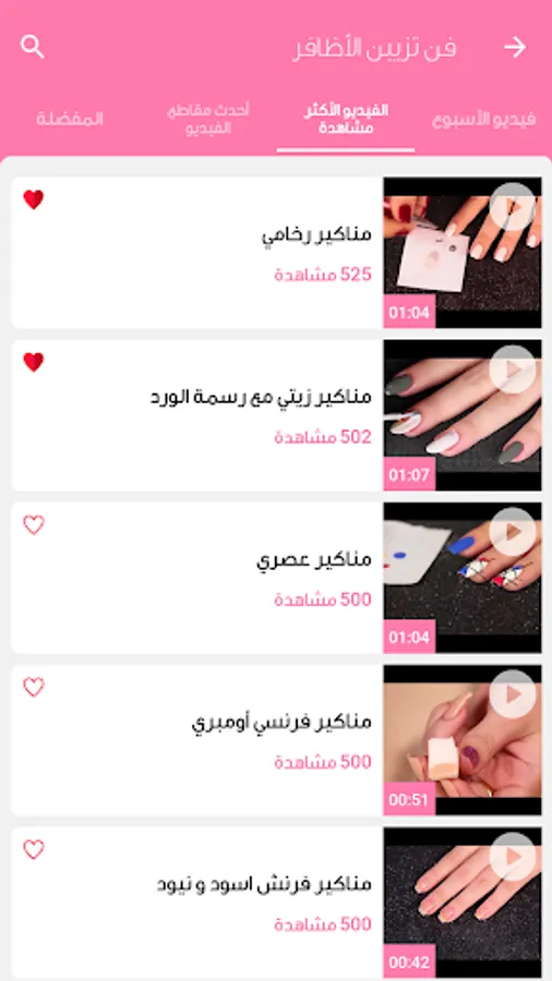 • امكانية إضافة الفيدوهات في "المفضلة" حسب الفئة.