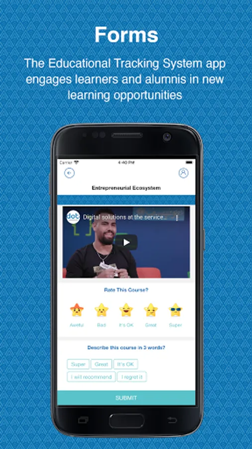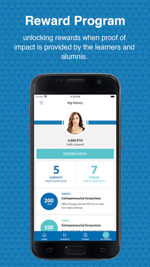 The Educational Tracking System app engages learners and alumni in new learning opportunities, as well as unlocking rewards when proof of impact is provided by the learners and alumni.