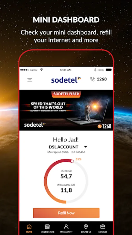 • Manage one or multiple Sodetel Internet accounts (ADSL, FIBER, etc…)