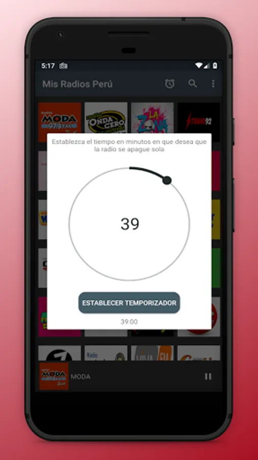 My Radios Peru has the Timer functionality so that the radio turns off only according to the time in minutes that you set.