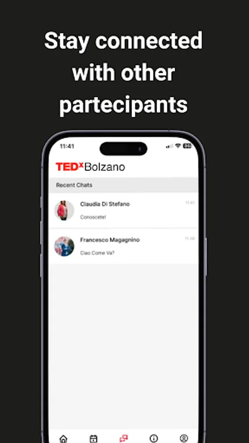 Siamo qui per presentarvi la fantastica app del TEDxBolzano. Questa app è stata creata per fornire tutte le informazioni relative all'evento TEDxBolzano, ma non solo. La app è stata progettata per creare una connessione tra i partecipanti e per rendere l'esperienza dell'evento ancora più coinvolgente.