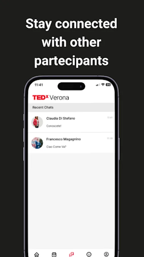 We are here to introduce you to the fantastic TEDxVerona app. This app was created to provide all the information related to the TEDxVerona event, but not only. The app was designed to create a connection between participants and to make the event experience even more engaging.
