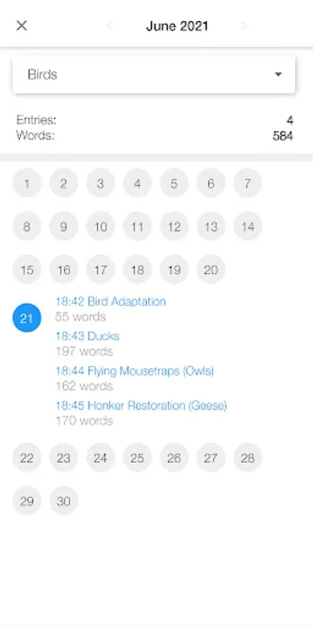 - Calendar view, highlights of your writings in months
