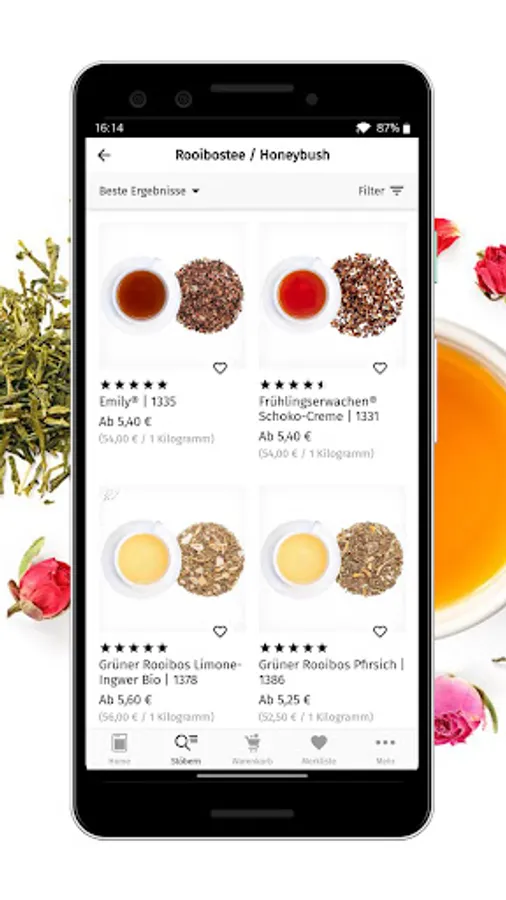 TeeGschwendner - discover the wide world of tea! With the help of our app, you are guaranteed to find your personal favorite tea among 350 loose premium teas. Whether black, green, white or oolong tea, fruit or organic herbal mixtures or rooibos and honeybush - our wide range of teas offers everything a tea heart desires. For more than 40 years, TeeGschwendner has stood for the best quality, maximum safety and excellent tea enjoyment. For the love of tea, we are constantly on the lookout for the best teas in the world. Enjoy tea with all your senses - we would like to share this experience with you. Selected garden teas, premium green teas, creative tea blends, soothing organic herbal teas, fruity, exotic or even creamy fruit teas, rooibos teas of every flavor, Ayurvedic teas and also tea in MasterBag tea bags - we only put the best in our cups. As with wine, there are also huge differences between cheap tea bags and premium teas that are lovingly processed by hand. Our mission is to convince you of our excellent quality, resource-saving packaging and exciting variety of flavors and to infect you with our passion for tea. This is what we work for in the Meckenheimer system headquarters and all our partners and employees in your specialist shops on site with heart and hand!
