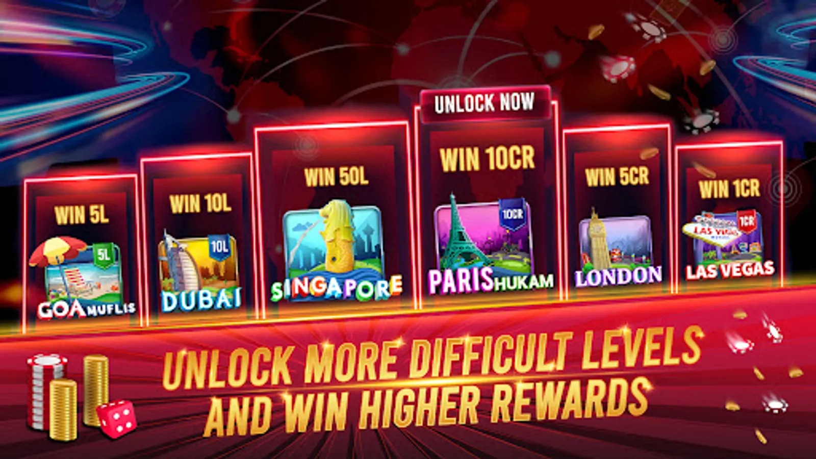 Try Teenpatti Tournaments at exotic locations.