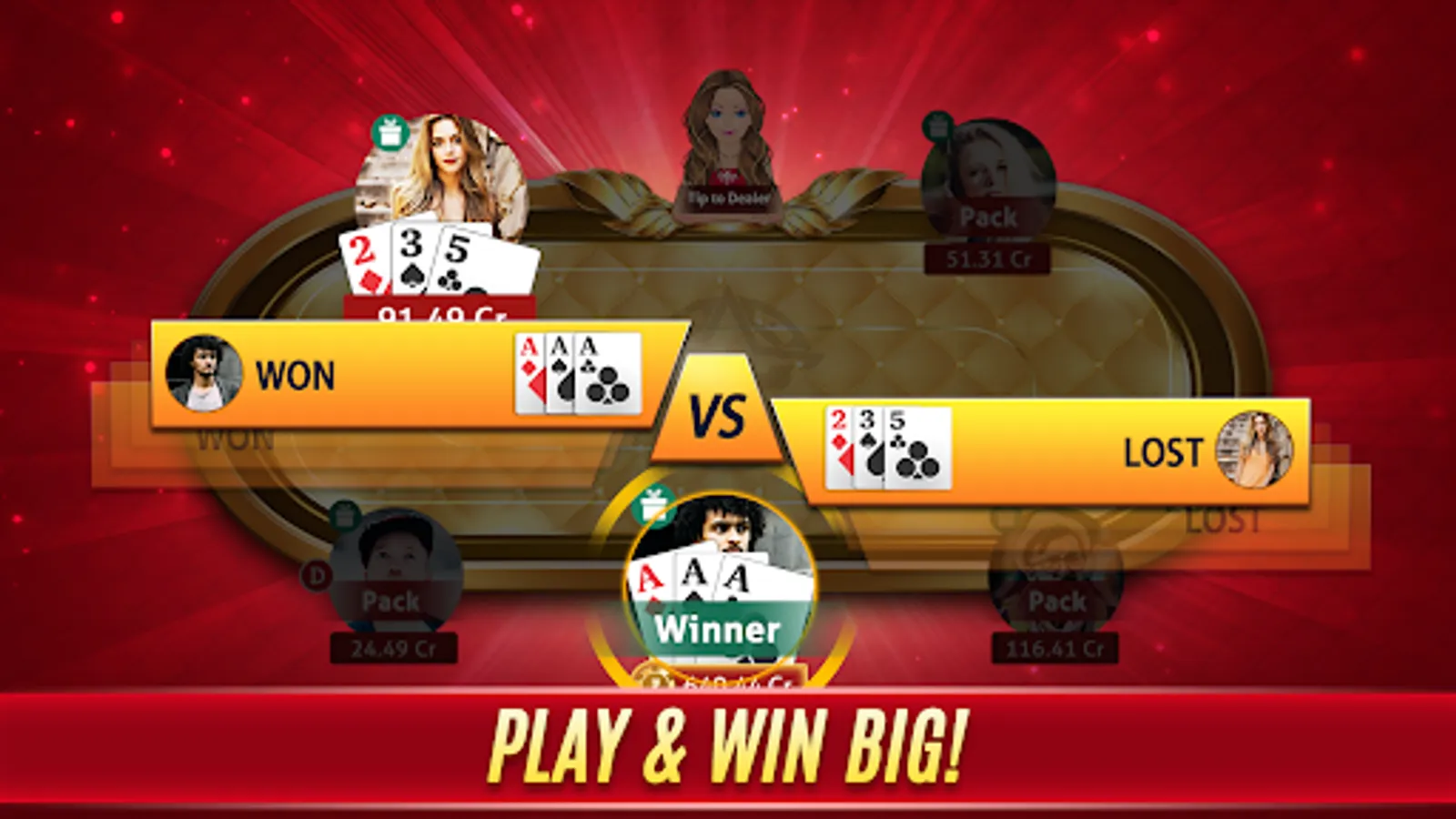 - Play variations by selecting one out of the 7 sequences from the 3 patti lot.