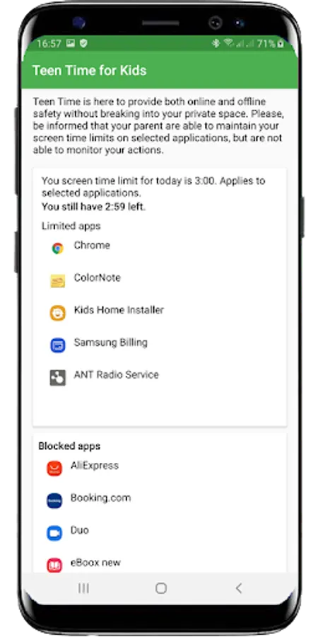 By installing Teen Time for Kids on your child's device, and Teen Time – Parental Control, Screen Time & GPS on your own will give you the perfect tool for managing your kid's smartphone or tablet on Android.