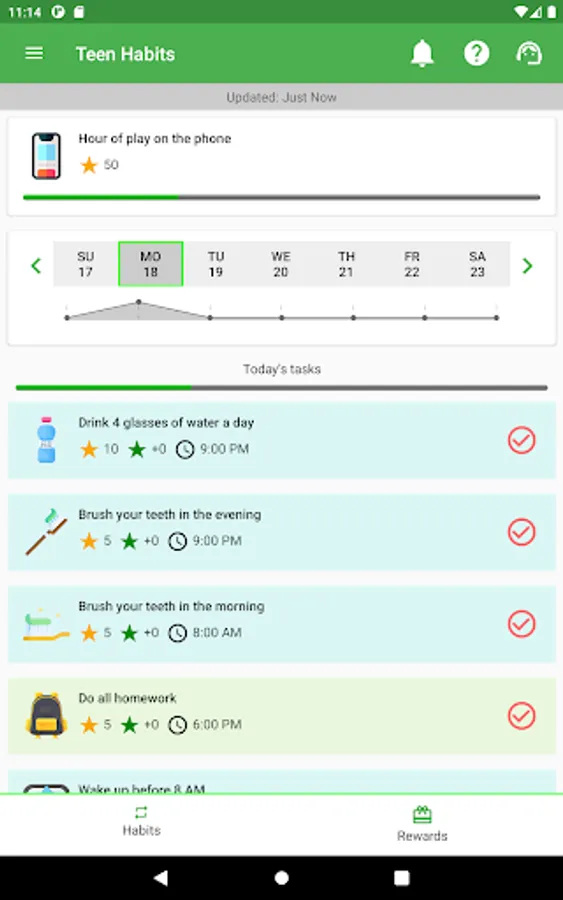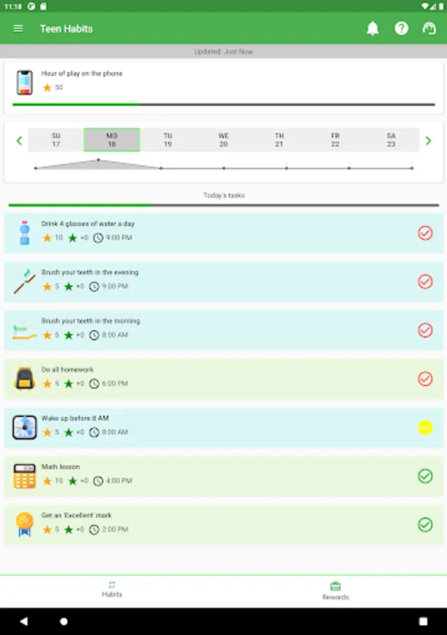 Teen Habits is based on a number of scientific publications that aims to ease development of healthy habits for youngsters. We incorporate daily tasks management, better motivation for completing tasks every day and not breaking the streak and, finally, rewarding the efforts.