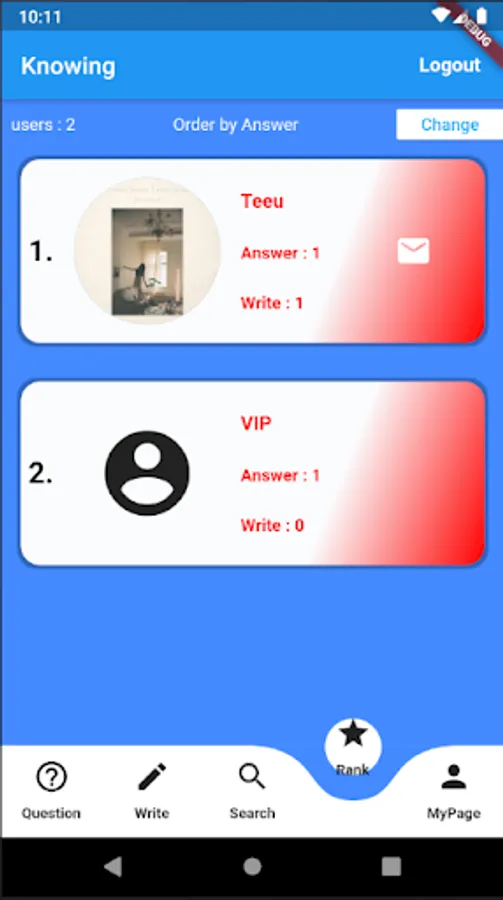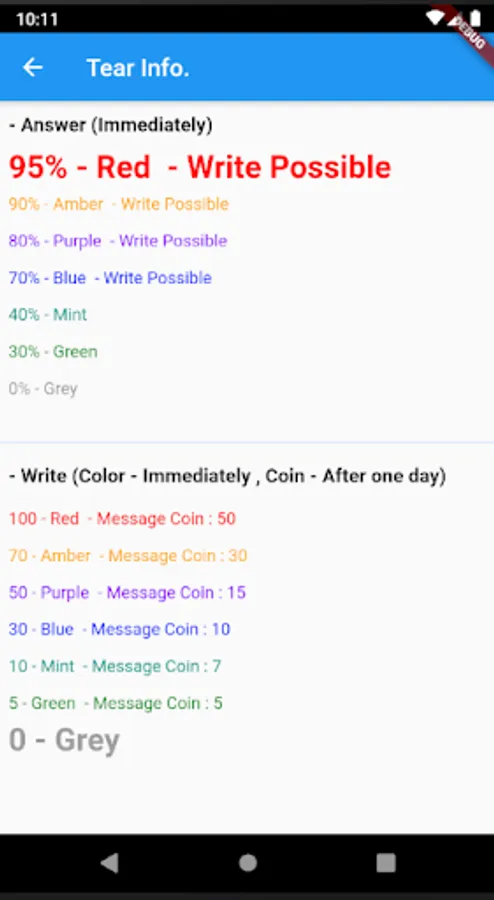 The user's tier is determined by the percentage of their answers, and the colors shown are different.