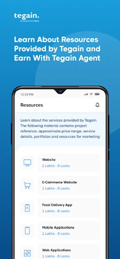 Tegain Agent provides the details of the its services and products with all of its marketing materials, price and scope of the service and products.