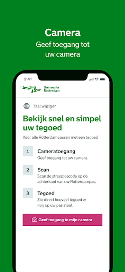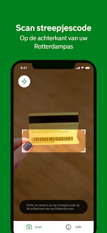 With the app you scan the barcode on the back of your Rotterdam pass with AOW credit or Youth credit and you can immediately see how much credit your card (still) has. The AOW credit or Youth credit shown is what is still available to spend at the time of request.