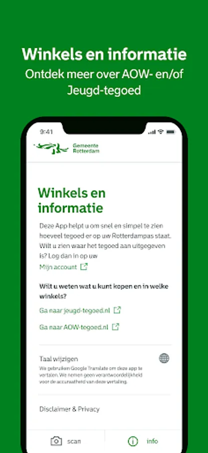 This App helps you to quickly and easily see how much AOW credit or Youth credit is on your Rotterdam pass.