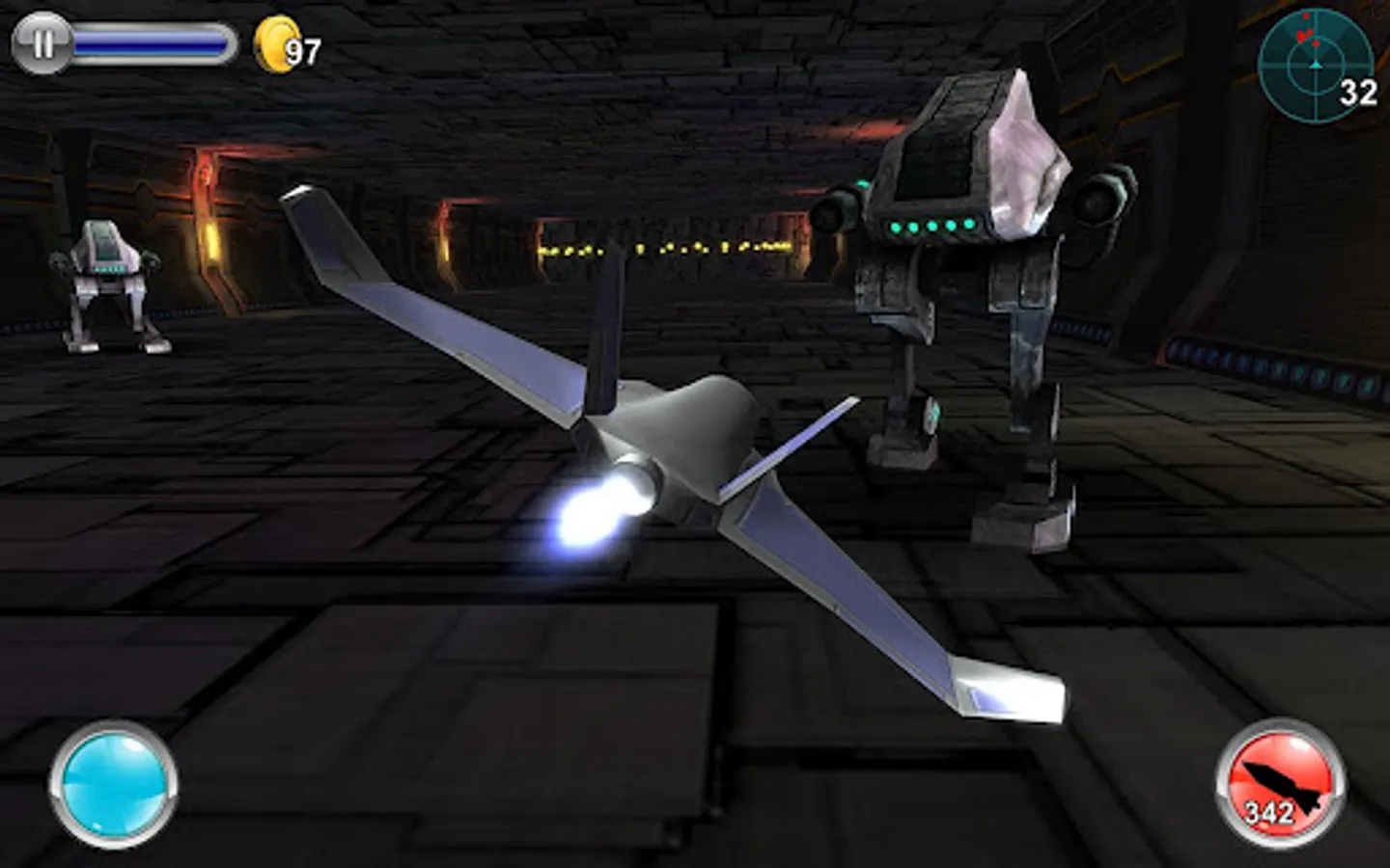 Dive into futuristic combat and navigate through a variety of supernatural landscapes while piloting your starship with intuitive, precise tilt controls. The clean interface allows you to press anywhere on the right side of the screen to rapid fire your main weapon, and press anywhere on the left side to hover. The hovering feature adds a whole new dimension to the game, as you can shoot enemies and dodge their fire without needing to fly past them. Enemies are all tracked in the real-time radar.