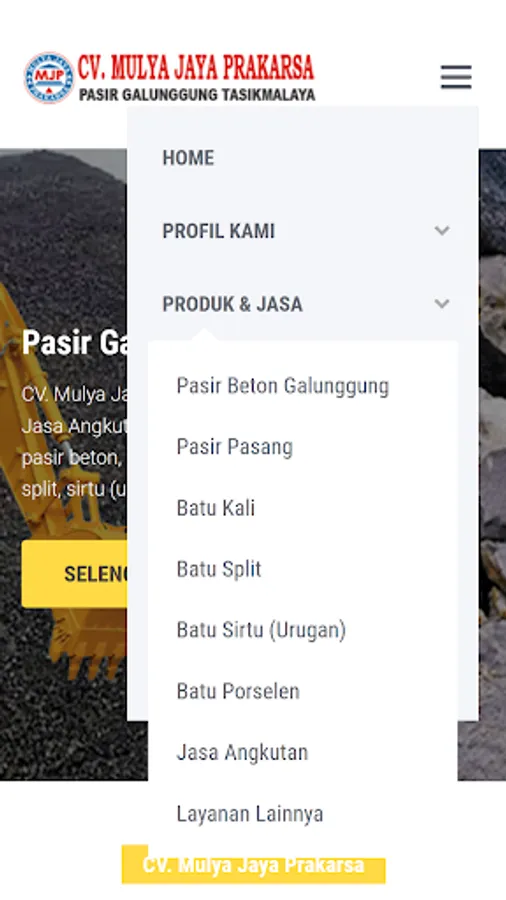 CV. Mulya Jaya Prakarsa: Supplier of Natural Materials and Transportation Services, Selling Galunggung Tasikmalaya Sand, concrete sand, sand pairs of poslen stones, river stone, split stone, sandstone (urugan), etc.