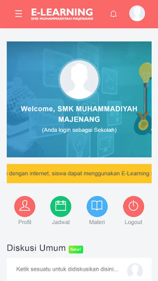 Now the E-Learning of SMK Muhammadiyah Majenang - Cilacap can be accessed on the android application, hopefully it will be useful.