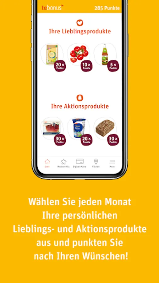 • Earn up to 20 points: with your three favorite products of your choice from a large part of the tegut... range