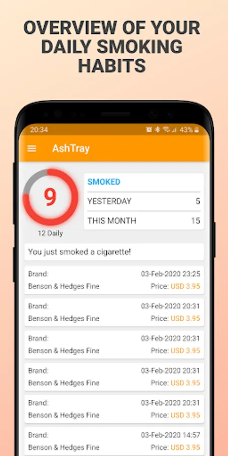 AshTray is an application that is meant to help all smokers to keep count of how many cigarettes they smoke per day, per month and per year. It is meant to be a simple and user friendly tool for smokers of all generations.