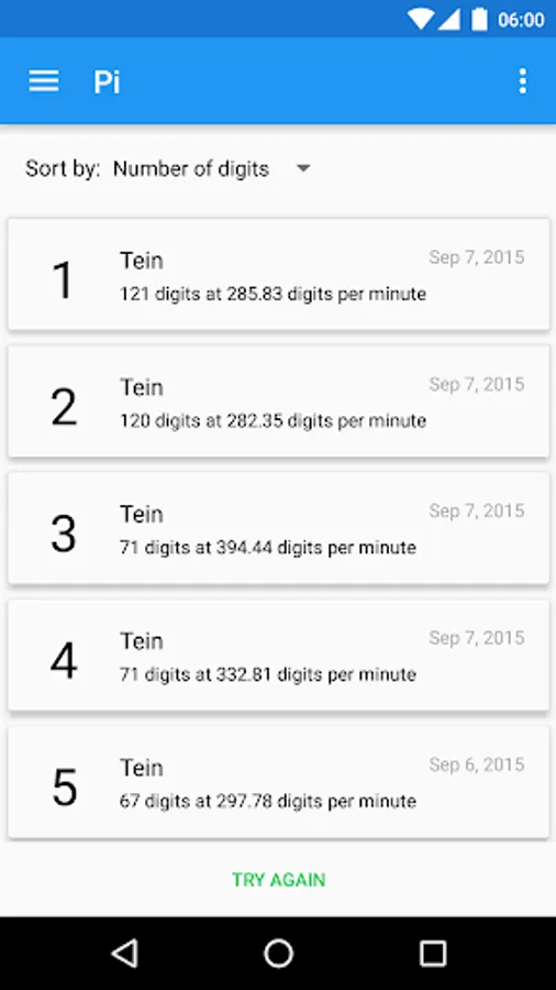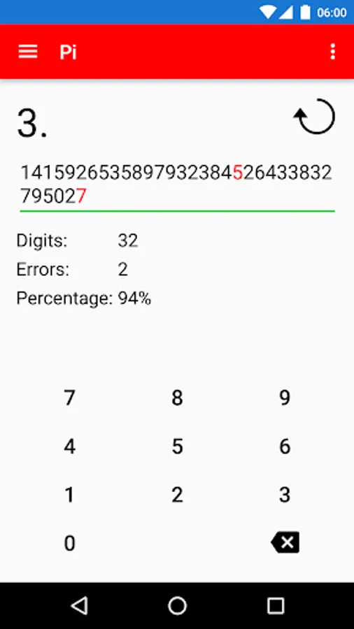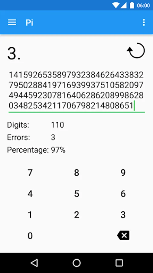 - Timed mode lets you type the digits from the beginning of the number and measures the time until the first error. See how many digits you typed per minute and improve on your achievements on the highscores page.