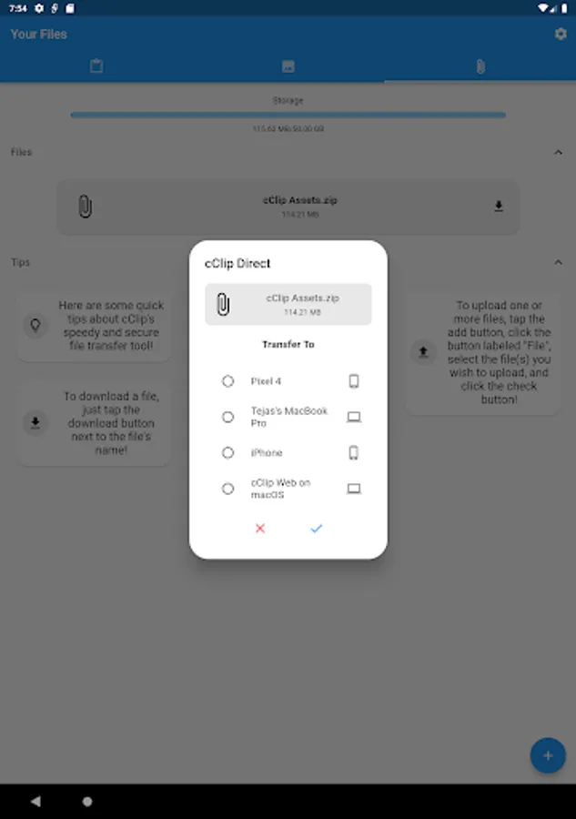 cClip currently has native support for Android, iOS, and macOS along with an application for Windows and Linux You can seamlessly transfer your files from one location to another through the easily accessible sharesheets, or utilize the persistent notification to quickly add your copied text. Once added, any items will be instantly accessible on all of your other cClip enabled devices.
