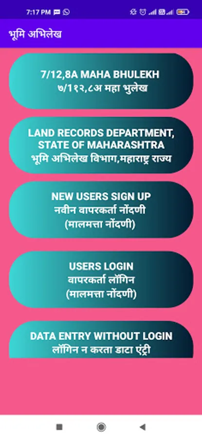 This app all options linked to " Maharashtra Public Data Entry and Land Records" government website.