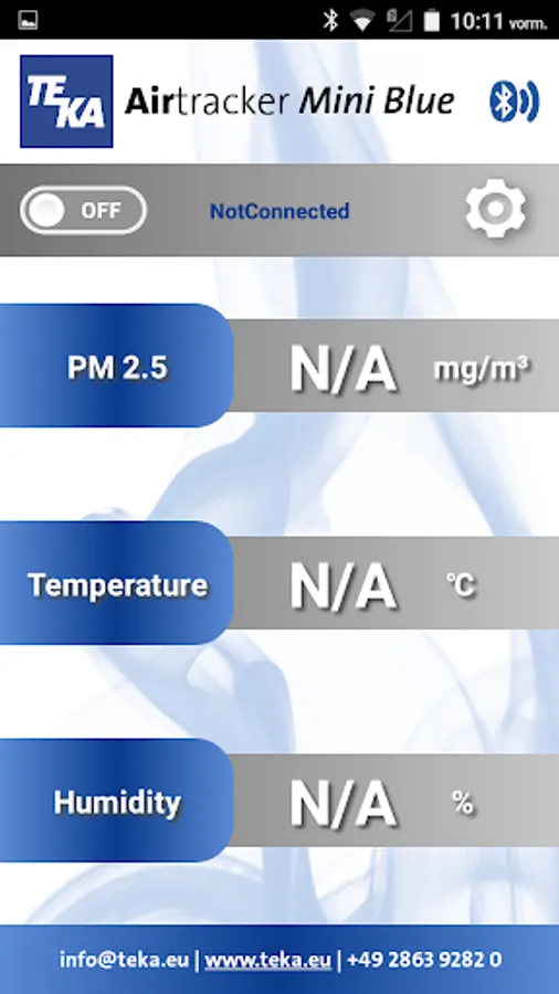 This app is to be used with the Airtracker Mini. Connect your Android device via bluetooth to the Airtracker Mini and check the current temperature, humidity and dust exposure (Particulate Matter PM 2.5) on the fly.