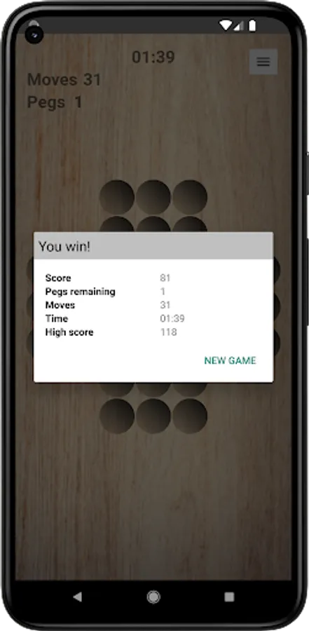 To get the highest score possible, you must end the game with only one peg left in the least amount of time. The fewer the pegs remaining at the end of the game, the higher the score.