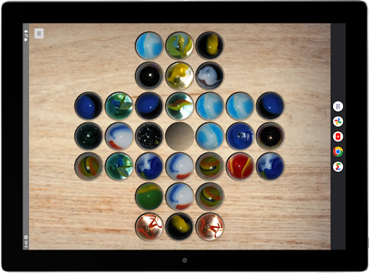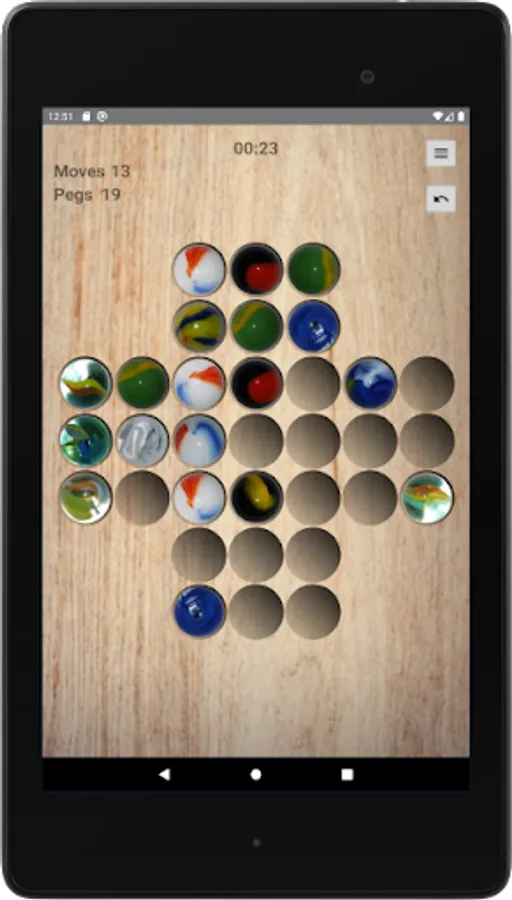 The game begins with all holes filled with pegs except one. Pegs are moved by jumping over adjacent pegs into an empty space. Simply touch the peg you wish to move then drag and drop it onto the empty space.