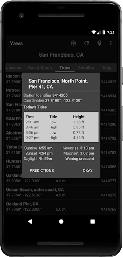 ■ NOAA 30 day tide predictions from stations within a 25 mile radius of the selected location.