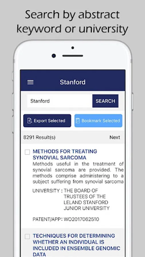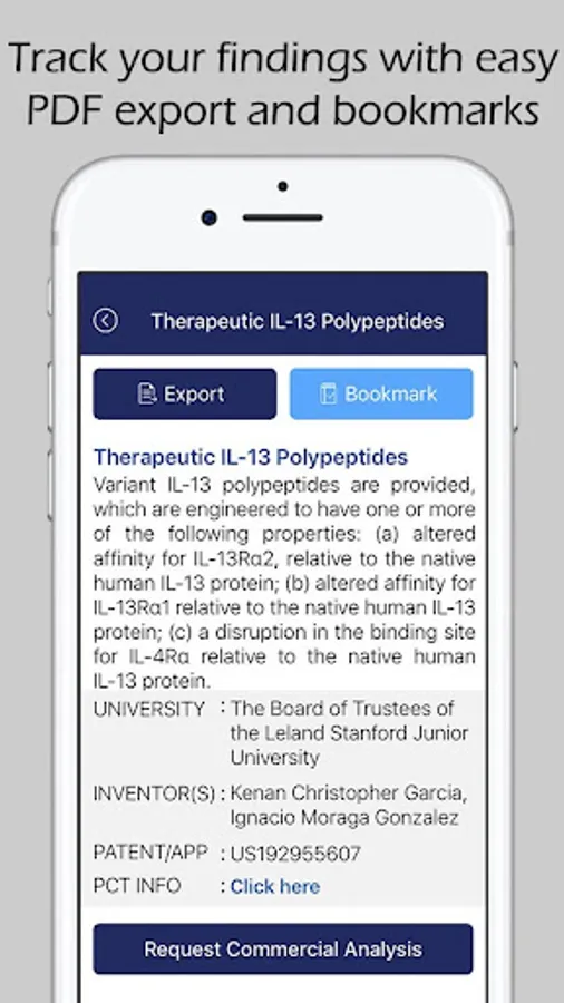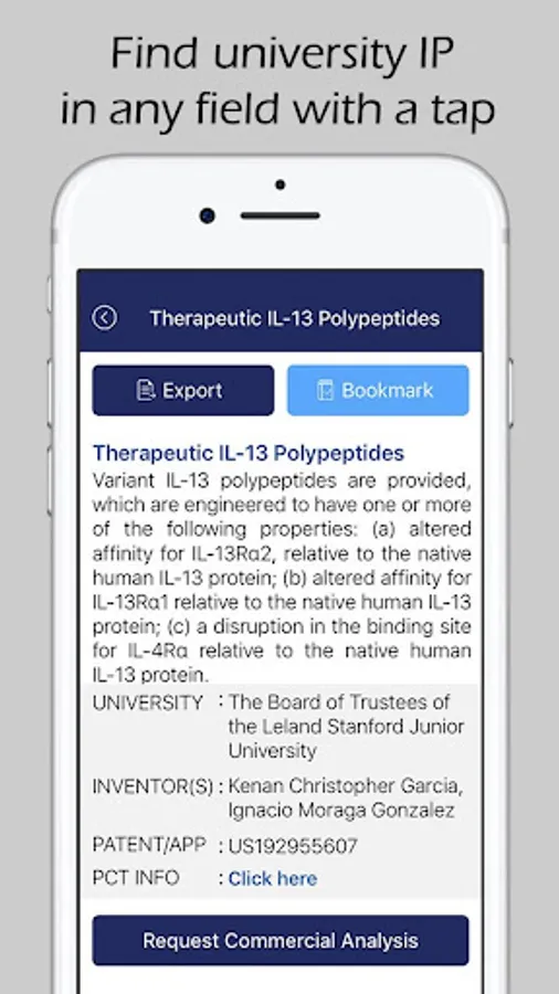 With convenient features such as bookmarks, easy export, university rankings and search history, you can move through the university technology space more smoothly than ever before. Try the Tekcapital app free today to feel the power of the world's university IP.