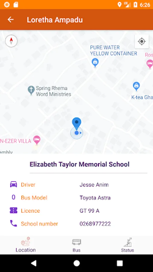 b. Track the whereabouts of the said school bus.