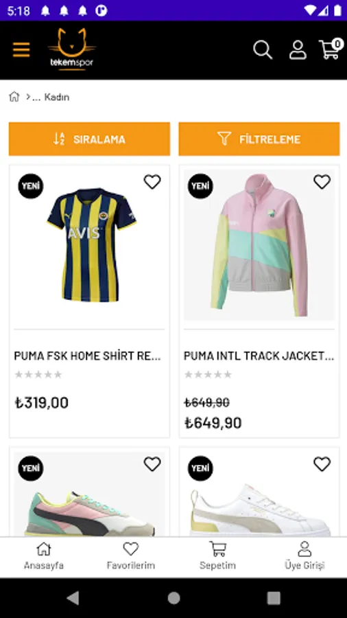With the Tekemspor.com mobile e-commerce application, instantly;