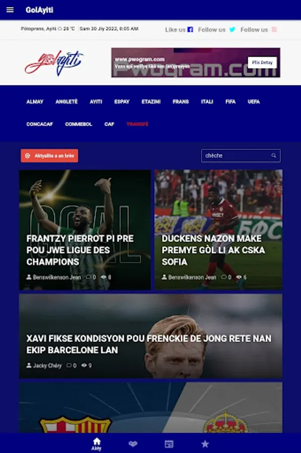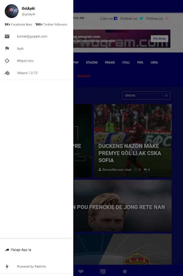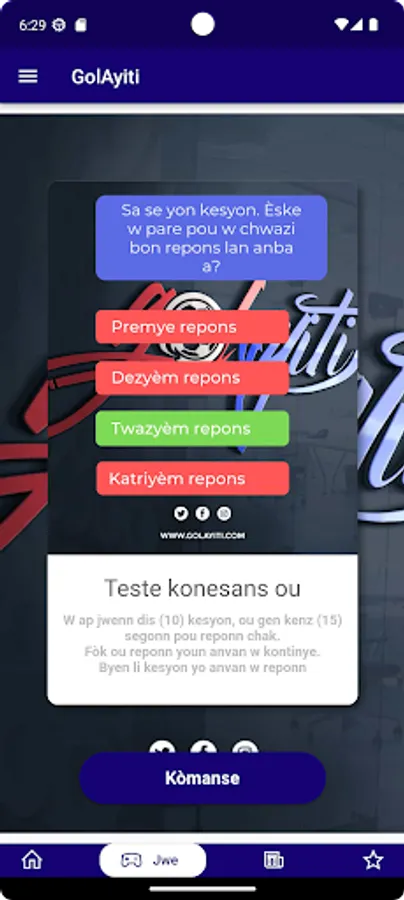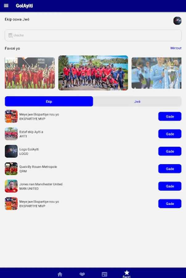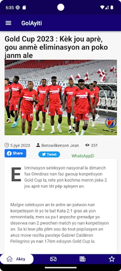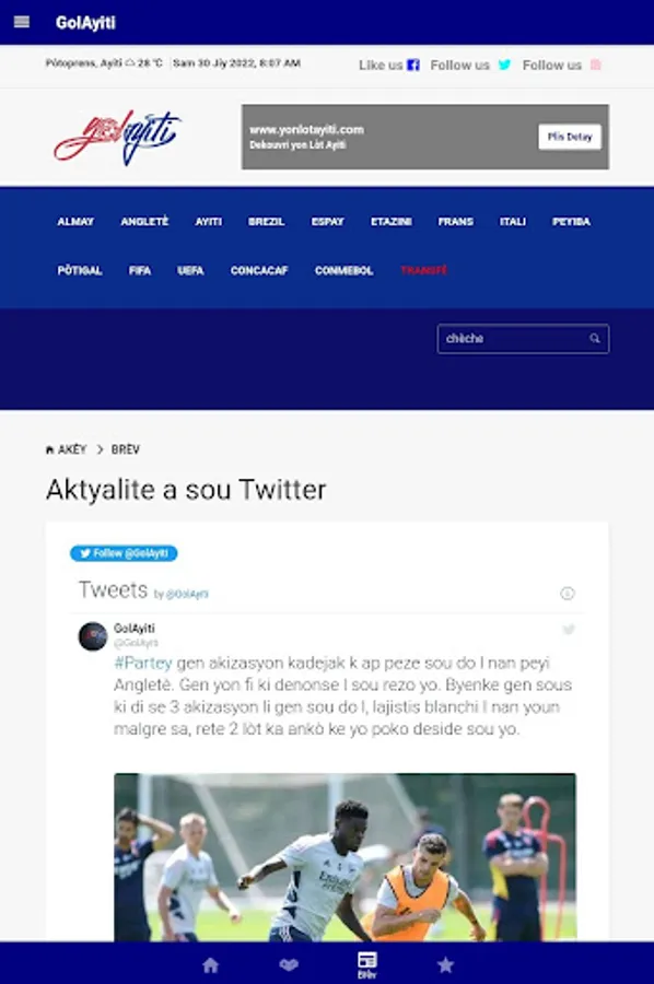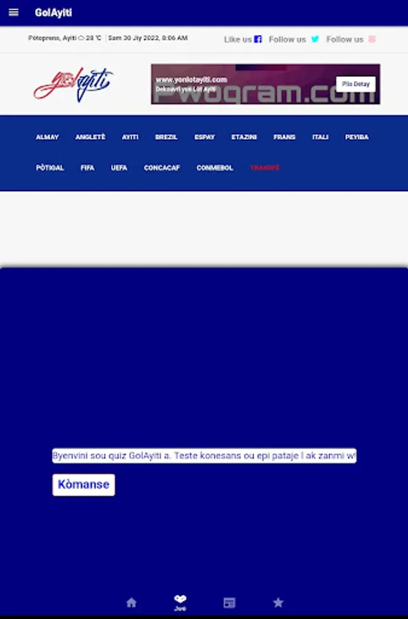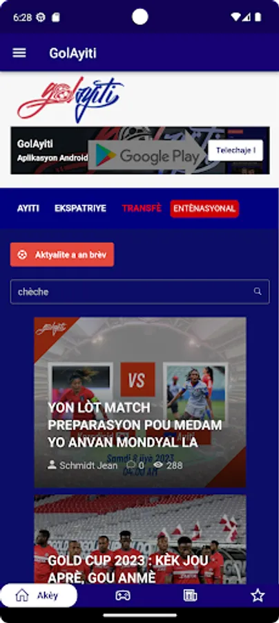 Nouvo vèsyon aplikasyon mobil GolAyiti a. Ou kapab li atik nou yo, gade piblikasyon Twitter nou yo, jwe kesyon repons sou foutbòl, gade enfo sou ekip ayisyen ak lejand ayisyen yo. Pa rate okenn detay.