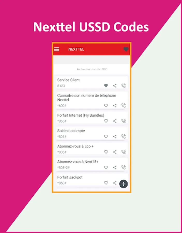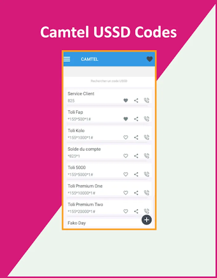 USSD Codes Cameroon is an application which contains the USSD codes of operators MTN, Orange, Nexttel and Camtel in Cameroon.