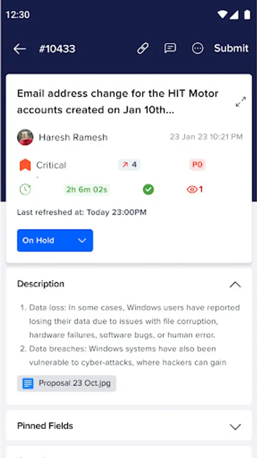 Support Agent / PSM / ISM can create a ticket in the mobile app on behalf of customer to report an issue or request assistance.