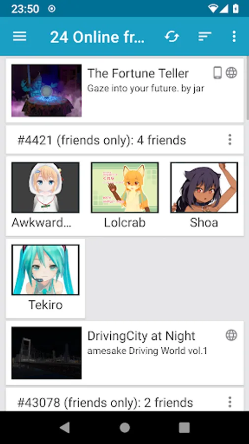 VRChat Tracker is an unofficial companion / assistant / helper app that lets you manage your VRChat friends, invites and avatars in a convenient way, with multiple sorting options. The app was released in early 2019 and is still gaining features.