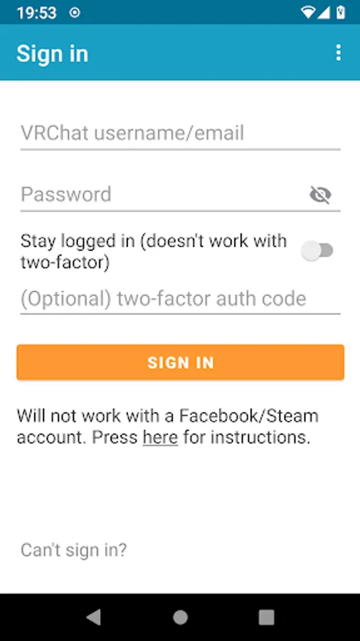 Please note that you cannot login with a standalone Steam or Oculus account but you can easily merge it into proper VRChat account by following the official VRChat guide https://help.vrchat.com/hc/en-us/articles/360062659053-I-want-to-turn-my-Steam-Oculus-or-Viveport-account-into-a-VRChat-account