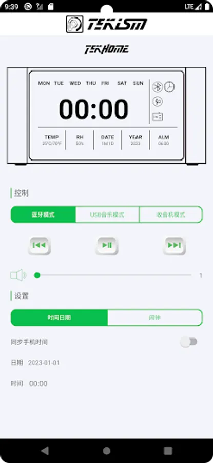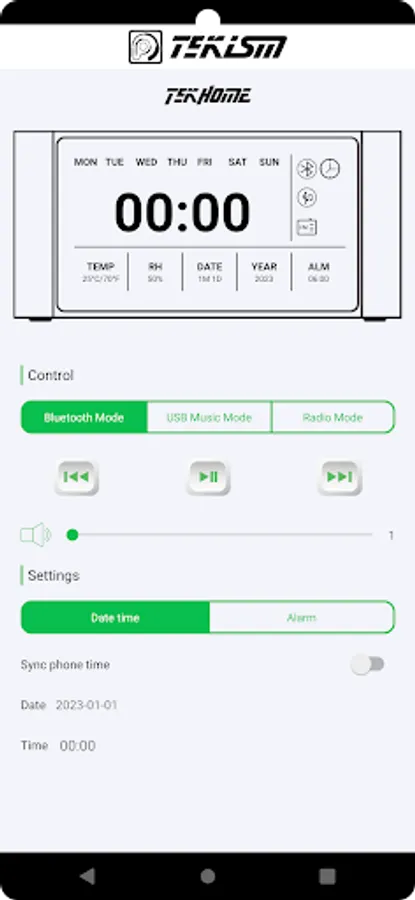 TEKHOME APP is a tool to control TEKHOME Bluetooth speakers. It connects to the device via BLE and allows you to control and adjust the clock and alarms on the device.
