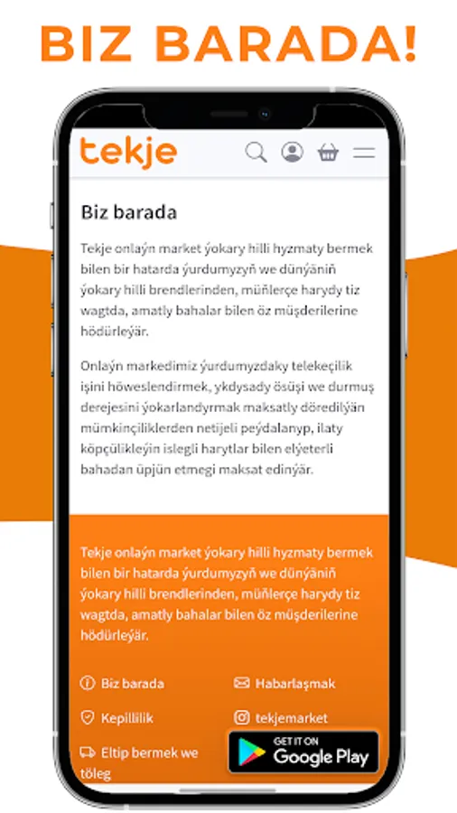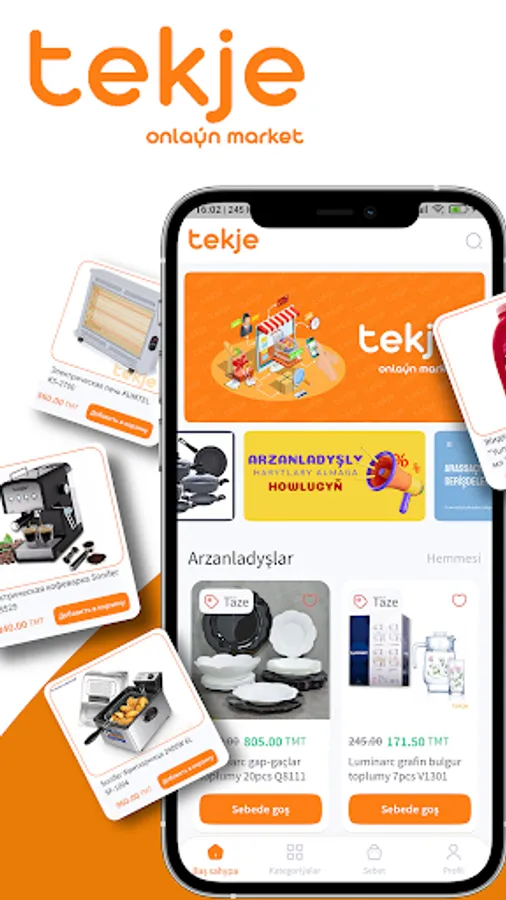 Tekje onlaýn marketi ýokary hilli hyzmaty bermek bilen bir hatarda ýurdumyzyň we dünýäniň ýokary hilli brendlerinden, müňlerçe harydy tiz wagtda, amatly bahalar bilen öz müşderilerine hödürleýär.