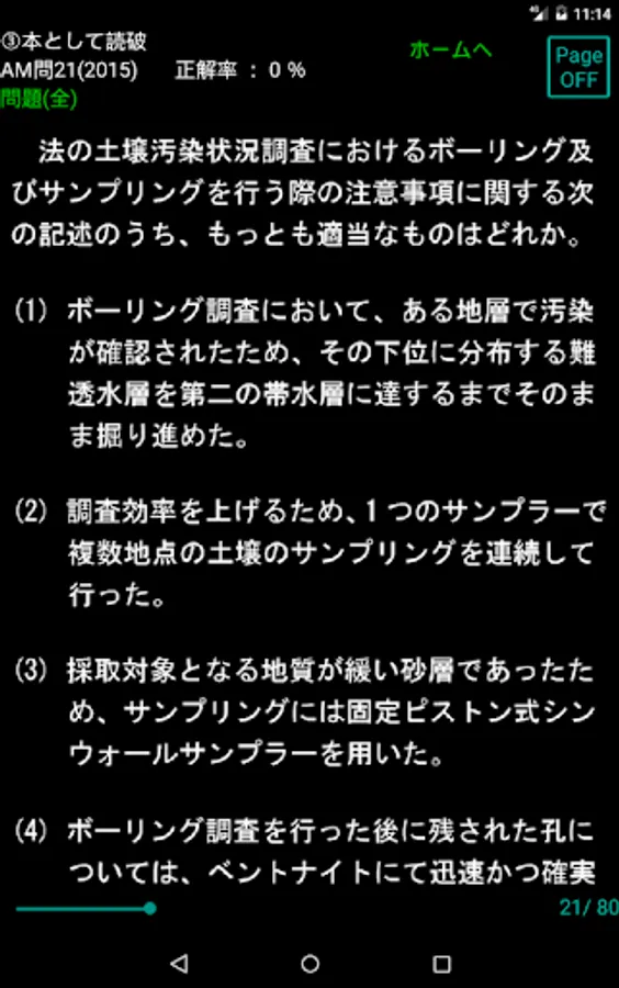 学習のコツは、全体概要を把握して、自分が苦手とするところを何度も読み込むことが大切です。このアプリは回答者が苦手とするところを解析して出題確率を上げていくので、自然に苦手とする問題が解けるようになっていきます。もちろん、問題を順番どおりにやることも、あなたが再度解きたい問題への移動も可能ですし、本としても読むことができます。また、あなたの理解状況を自ら解析を行なえるようになっています。