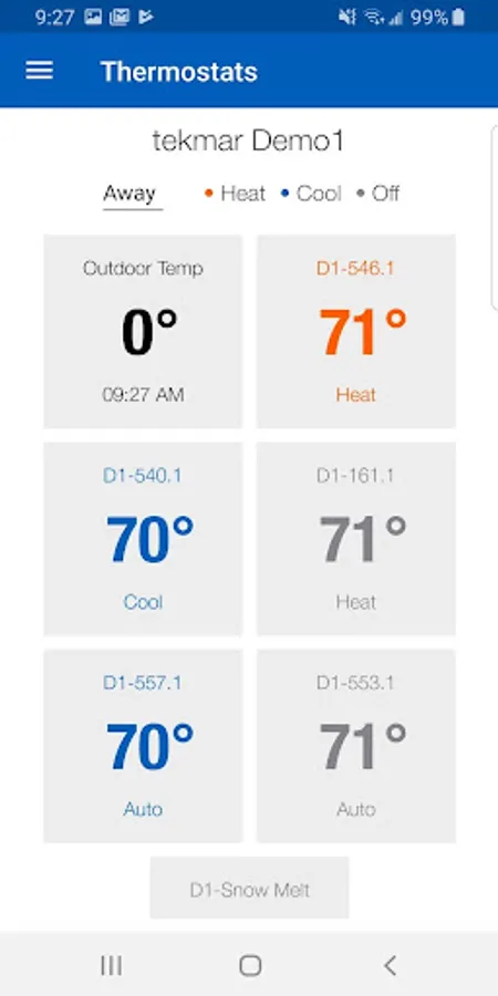 The tekmarNet® Internet Gateway app allows remote access to a tekmarNet® HVAC system. Users can view and change settings for each thermostat, including: temperature, heat/cool/auto, fan operation, relative humidity, schedules, and the away scene. In addition, the boiler system temperatures, firing rate, run times, and pump status can be viewed. All system data can be graphed on a chart. Users are informed of errors and warnings through email or text notifications. The 486 includes three alert inputs that can be used to monitor auxiliary equipment.
