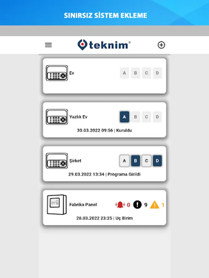 Teknim application has been developed to enable our customers to control and manage their security And Fire panels via their mobile devices on a cloud-based basis.